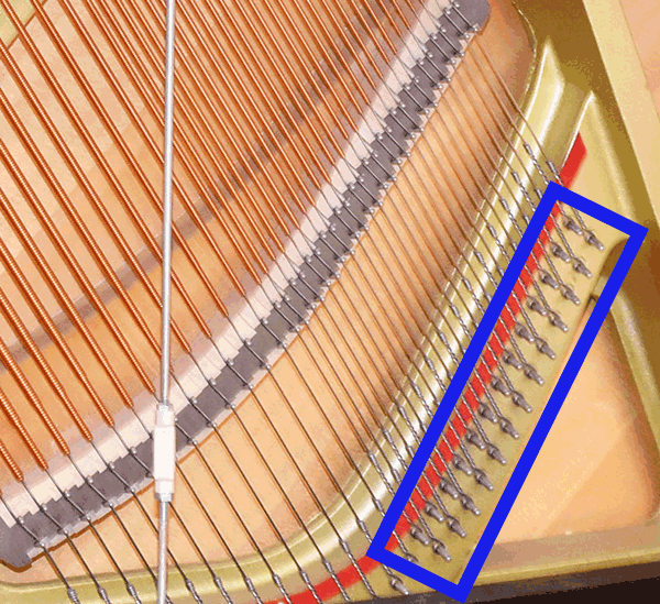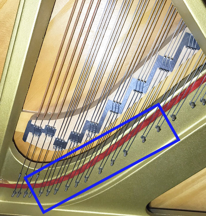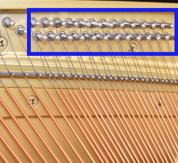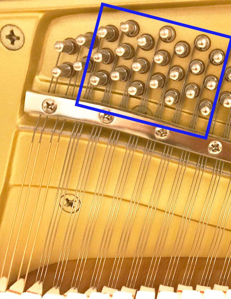 1つの音に対して3本の弦が張ってあるエリアの一部分です。